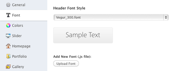 You can select from built-in font or upload your own font (Cufon) via font manager